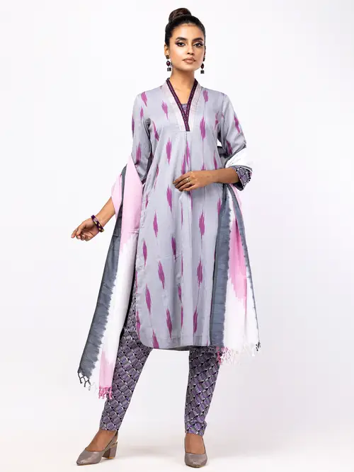 Be the first to review “Grey Printed and Embroidered Viscose-Cotton Kameez”